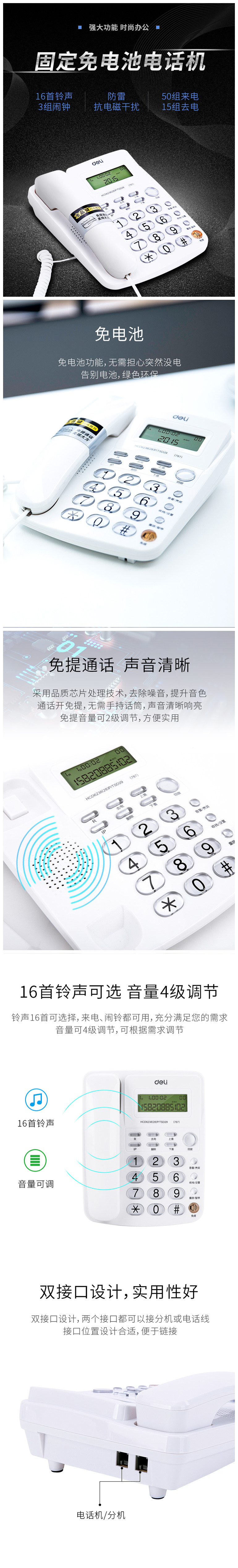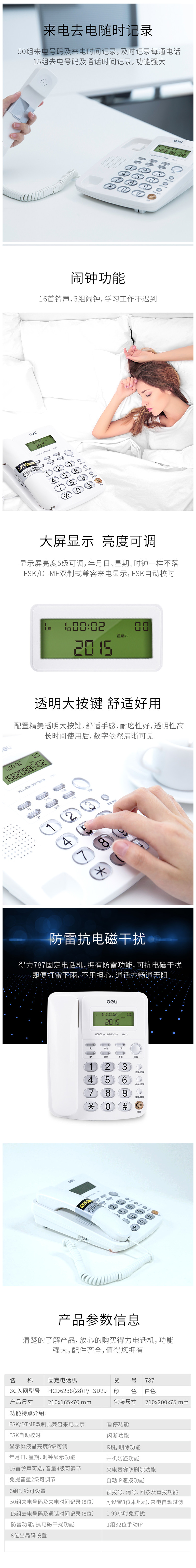 得力(deli)787 免電池來電顯示座機(jī) 時(shí)尚免提辦公家用電話機(jī) 透明按鍵固定電話 耐磨不褪色 電話機(jī)