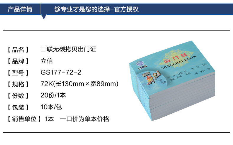 立信出門證 新紀元GS177-72-2 出門證二聯 干式復寫 50份*2聯