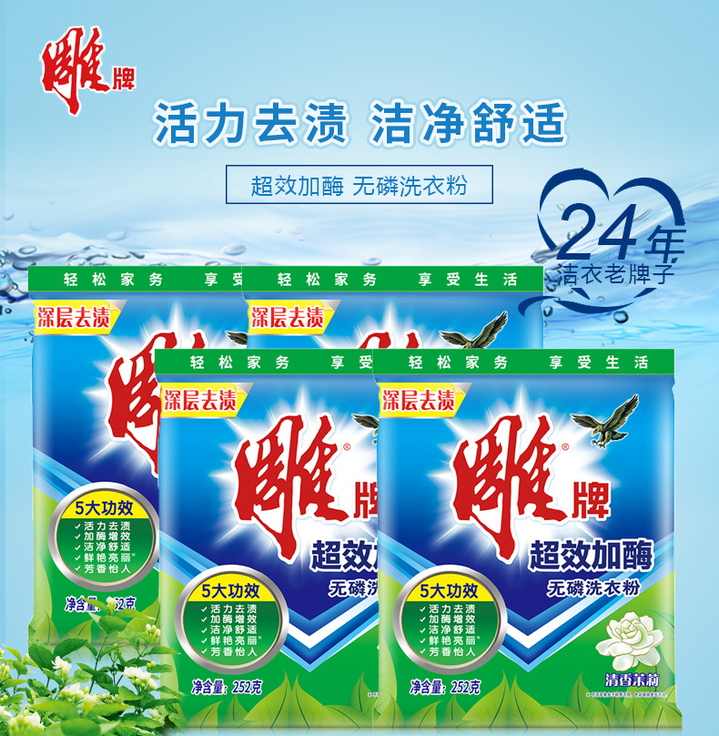 雕牌洗衣粉1.638kg 1.28kg 252g包加酶無磷茉莉清香輕松去污衣物清潔